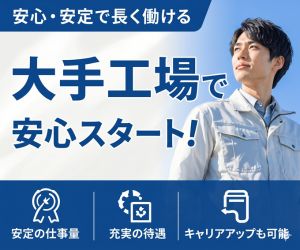 ・1週間の充実した研修制度あり ・分からない事はスグ優しく教えてもらえる ・150円から利用可の食堂あり ・キレイな休憩室を完備 【お仕事内容】 ハイブリッド車用電池の 製造ライン作業です 具体的には... ・部品のキズチェック ・電池の動作チェック ・良品と不良品の仕分け スキル要らずの簡単作業だけ! 【しっかり稼げる】 高時給の2交替制で時間外あり! でも年間休日は134日でオフも充実! 【通勤便利】 山陽白浜の宮駅から無料送迎バスで 10分とアクセスも良好 マイカー通勤もOK |