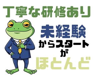 | <募集条件> 経歴不問!未経験OK! 3日間の入社研修に加え 先輩スタッフが丁寧にサポート! 未経験から安心スタートOK! 20代30代40代男性活躍中! 一緒に始める仲間もたくさん! お気軽にお問い合わせください! |